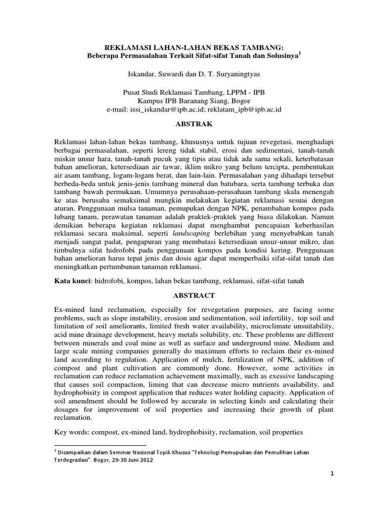 Pdf Reklamasi Dan Pengelolaan Lahan Bekas Tambang Issi Iskandar